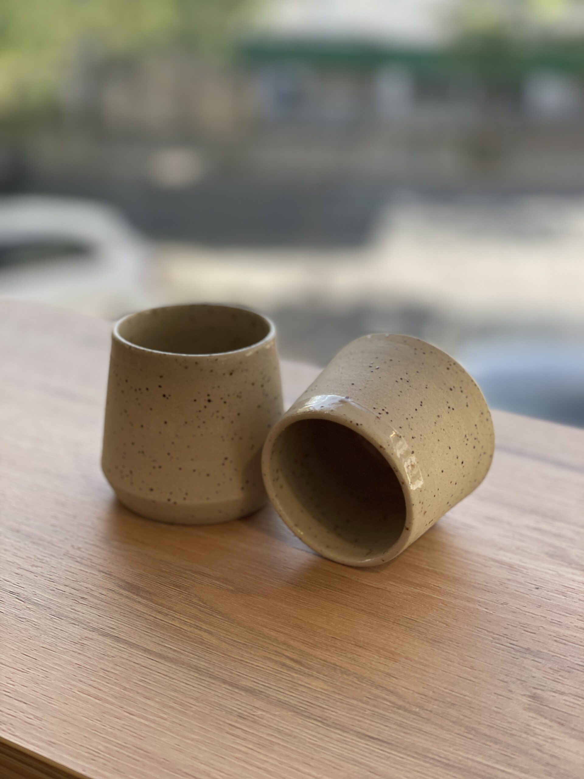 Ceramic cup made with stoneware clay and transparent glaze on the inside by Dilek Oz.