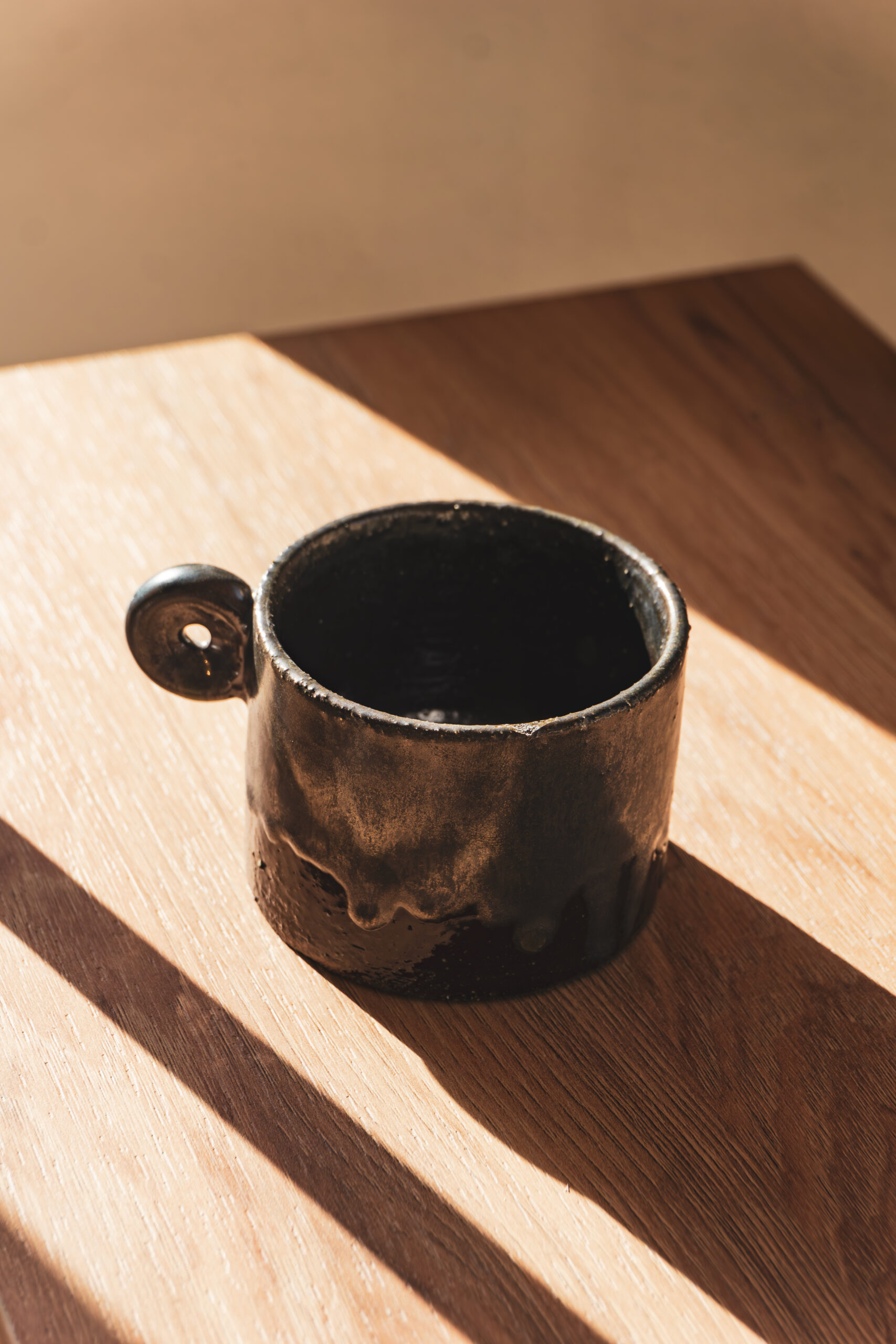 Ceramic cup made with stoneware clay and darke green glazing, by Lavatoy.
