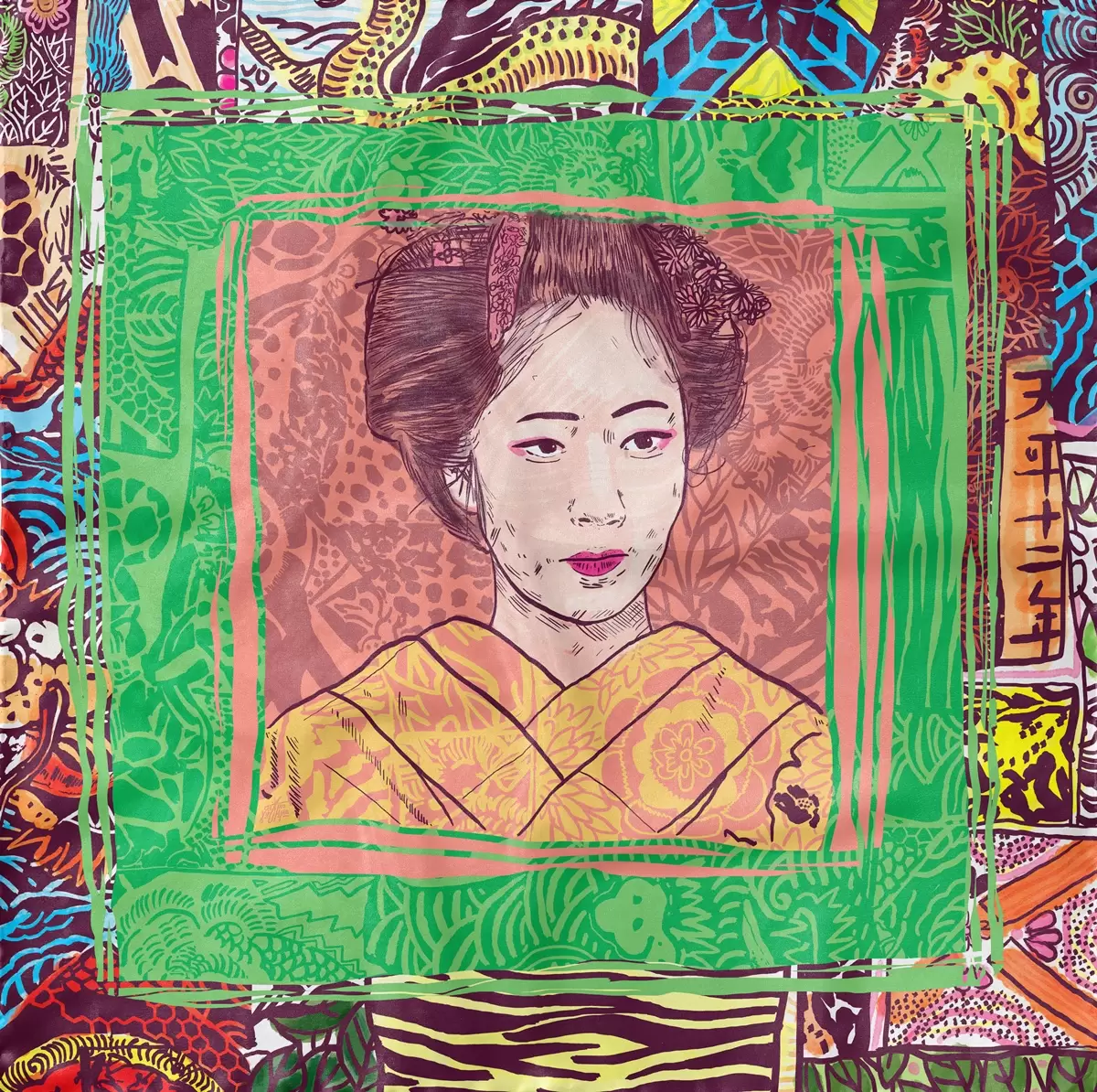 - Description: 100% Silk – Hand illustrated